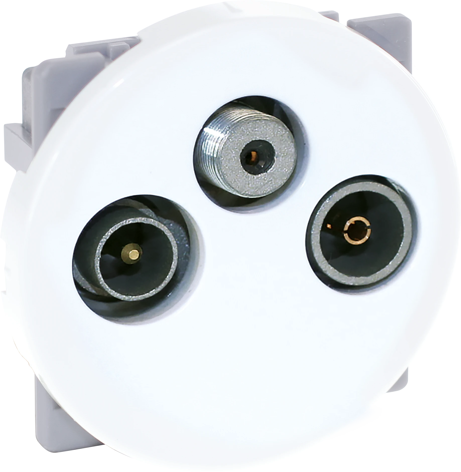 Description:TV/FM/SAT socket mechanism with frequencies 470–790 MHz (TV), 87–108 MHz (FM), and 950–2150 MHz (SAT).